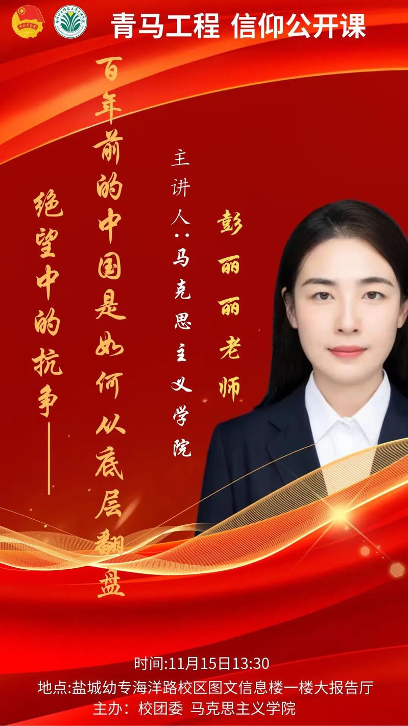 为深入学习贯彻党的二十大精神,进一步加强我校团学干部队伍建设,引导团学骨干学习和掌握党的理论创新成果,坚定跟党走的理想信念。11月15日下午,盐城幼儿师范高等专科学校马克思主义学院彭丽丽老师在海洋路校区图文信息楼一楼道德讲堂为我校第二期“青马工程”培训班全体学员和新一届校学生会学干开展了信仰公开课专题讲座。讲座由校团委唐明澄老师主持。