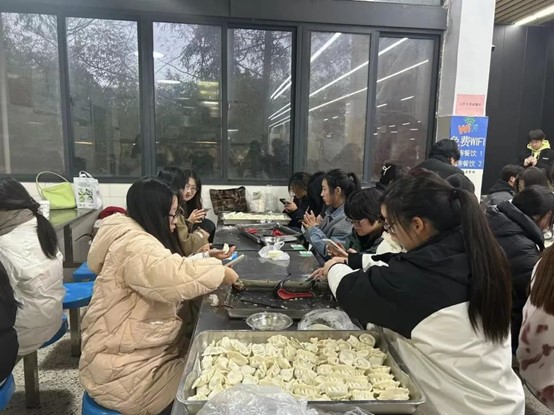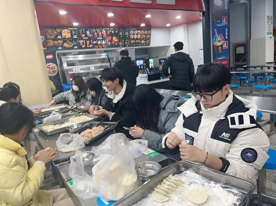 食堂外面寒风瑟瑟,活动现场却一片火热。大家早早来到了活动现场,在简单的分工后,同学们纷纷撸起袖子,兴致勃勃地准备大展身手。