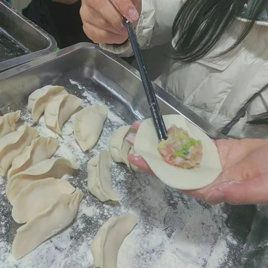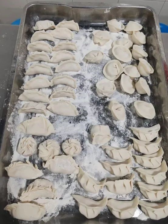 包饺子看似简单,也不是一件容易的活,对于有的同学来说小菜一碟,但有的同学却是手忙脚乱,闹了不少笑话,在嘻嘻哈哈的笑谈声中,千姿百态的饺子摆满了桌子。有的弯弯的像个月亮,有的圆润饱满像一个大元宝,还有的像一个包子......不信,你来看看。