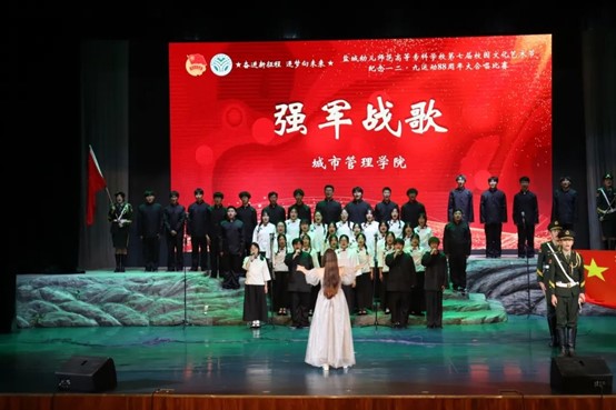 7个学院分别组成代表队,同学们在悠扬的旋律中回望峥嵘岁月,用铿锵的歌声致敬先辈风骨,唱响新时代青年不忘初心、砥砺奋进的华美乐章。接下来让我们一起回顾比赛现场的精彩表现吧!