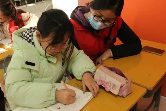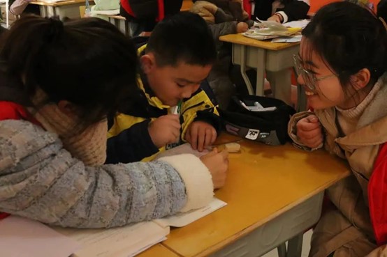 有一种陪伴,是生命当中的偶然,却同样温暖人心。大学生志愿者在与孩子们一同完成作业,协助孩子们温故知新、打牢基础的过程中主动运用自己的专业知识,让“小课堂”更加丰富。