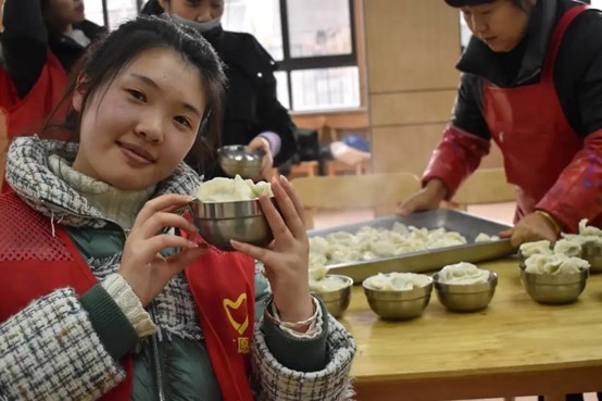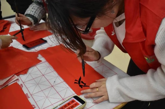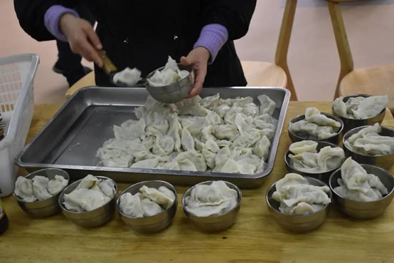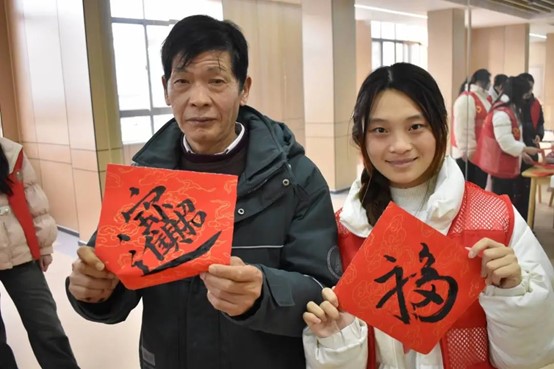 为了让老人感受到年轻一辈的热情与关怀,盐青柚们准备了包饺子和写春联两个环节。在包饺子过程中,所有人都沉浸在欢乐的气氛。接着,盐青柚们铺好纸张、摆好笔砚,邀请老人们一起写春联。活动结束后,盐青柚们将自己写的春联送给老人。