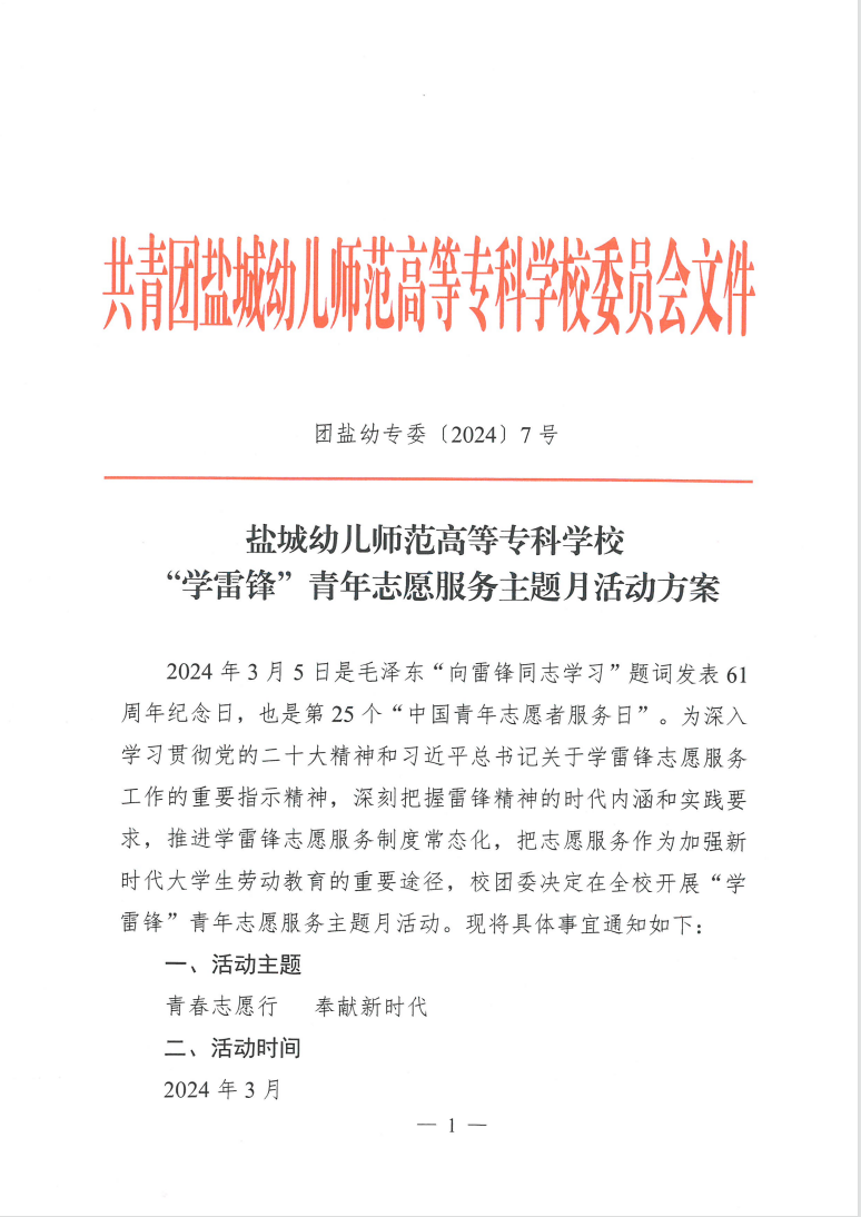团盐幼专委〔2024〕7号-“学雷锋”青年志愿服务主题月活动方案(1)