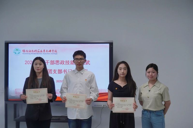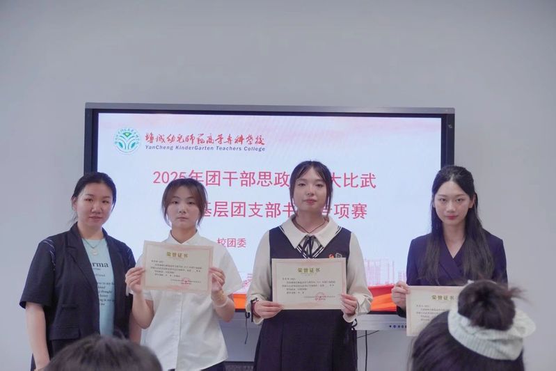 为深入学习贯彻习近平新时代中国特色社会主义思想,进一步聚焦思想引领主责主业,团结引领全校团员青年坚定信念跟党走,提升基层学生团干部应对新形势、新变化、新任务的能力,6月13日,校团委举办盐城幼儿师范高等专科学校2025年团干部思政技能大比武基层团支部书记专项赛。彭丽丽、吕品洁、唐明澄等三位老师以及2024年省思政技能大比武获奖选手李嘉怡和时蓉两位同学担任评委。